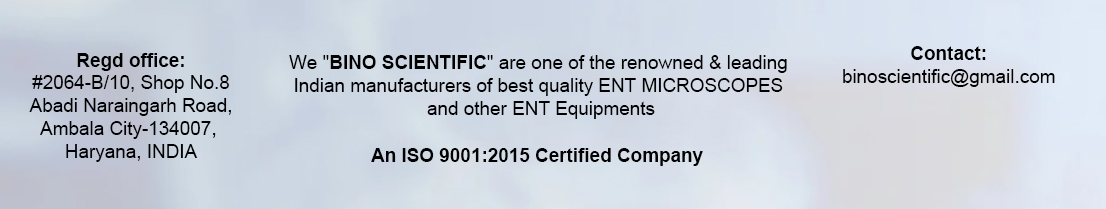 We "BINO SCIENTIFIC", are one the leading manufacturer & exporter of ENT MICROSCOPE to various Hospitals, Clinics etc.This is fabricated by using the technically advance components and advance machinery.New design and precisely manufactured to suit various medical applications. Our ENT MICROSCOPE is highly popular among the clients worldwide. |